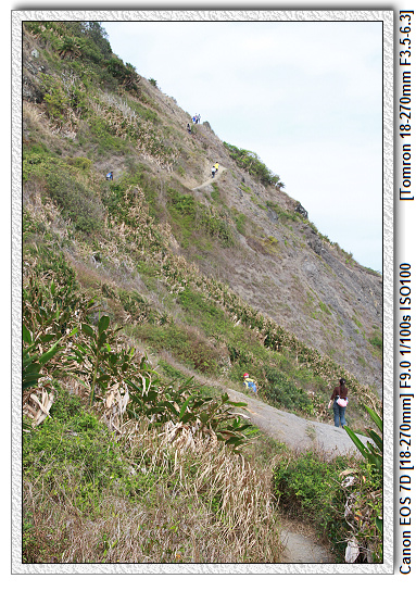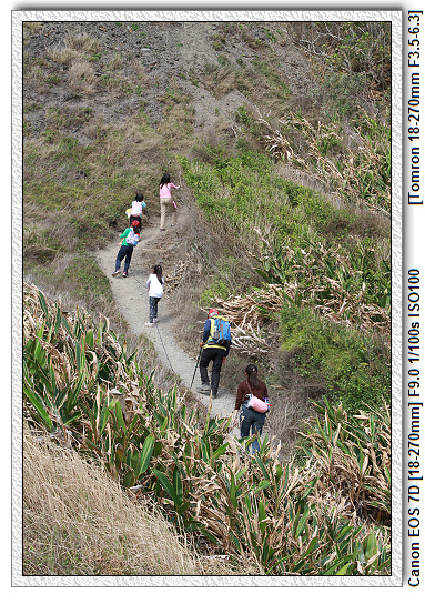 【前方路口左上,可前往旭海大草原,可看見古道的遊客】