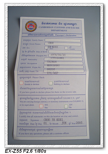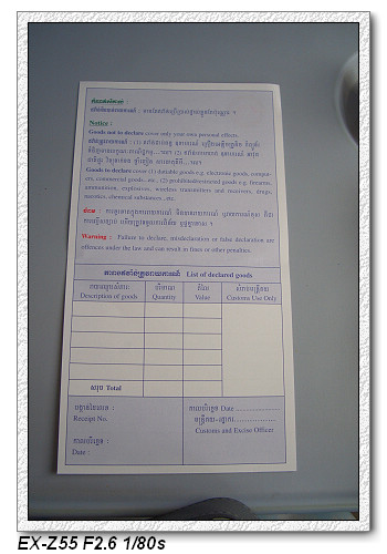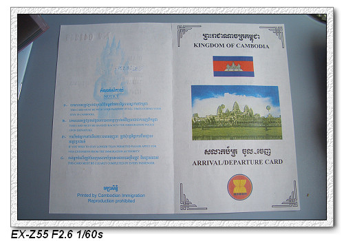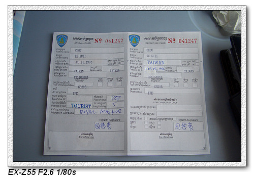 柬埔寨是落地簽證,所以在飛機上時會先填好所需的文件,以便通關時可節省時間。
