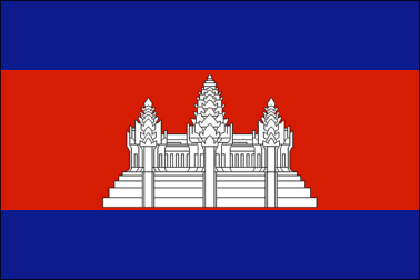 柬埔寨國旗以其著名的吳哥窟為主題,中間白色的建築物就是吳哥窟。柬埔寨於九世紀至十五世紀出現吳哥王朝,國勢鼎盛,文化燦爛,版圖包括今日柬埔寨全境以及泰、寮、越三國之部份地區,為柬埔寨歷史上最輝煌的時期,吳哥窟即為當時的文化遺產,現已成為柬埔寨最具代表性的象徵建築物。柬埔寨國旗用了紅、白、藍三色,是受到法國國旗的影響。紅色代表民族,白色代表佛教,藍色象徵王室,正好符合柬國的國家銘言「民族、宗教、國王」。
