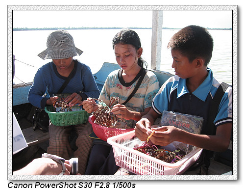【船上兜售物品的小朋友:由右至左分別是15、12、13歲】