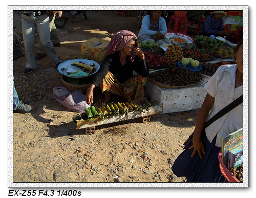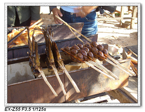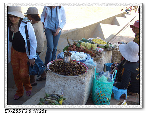 結束馬來湖的行程,順道在附近的攤販逛逛。有一些水果、炸蟋蟀。蟋蟀是經由炸過,可以直接食用。