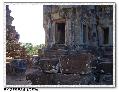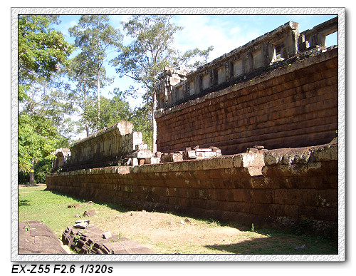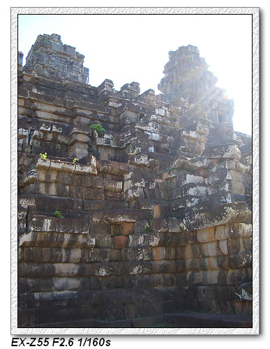 目前來到這一區是屬於大吳哥城(Angkor Thom),大吳哥城佔地九平方公里,為四邊各為三公里的正方形王城,周圍有寬一百公尺的護城河,是由人工挖掘建造。大吳哥城有五個城門(20m 高),東西南北各開一城門,另外,在東門北側再開一個城門。其中一個是勝利之門,只要打贏仗,就從這個門進去。大吳哥城是Jayavarman七世國王所建的國都,是吳哥王朝最輝煌的時代。