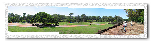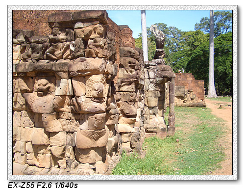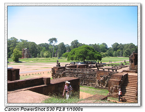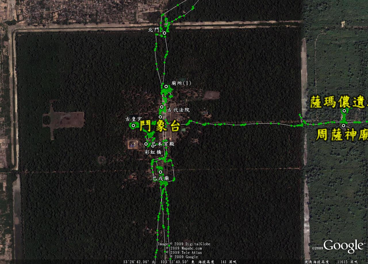 根據元代周達觀的『真臘風土記』,說明如下:『宫室﹕國宫及官舎府第皆面東。國宫在金塔、金橋之北,近門,周圍可五六里。其正室之瓦以鉛為之,餘皆土瓦。黄色橋柱甚巨,皆雕畫佛形。屋頭壯觀,修廊複道,突兀參差,稍有規模。其莅事處有金欞,左右方柱上有鏡,約有四五十面,列放於窗之旁。其下為象形。』另外一段文字則描述著:『國宫之對岸有小石塔十二座』。