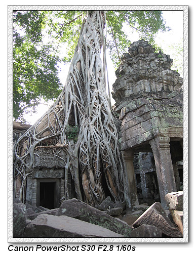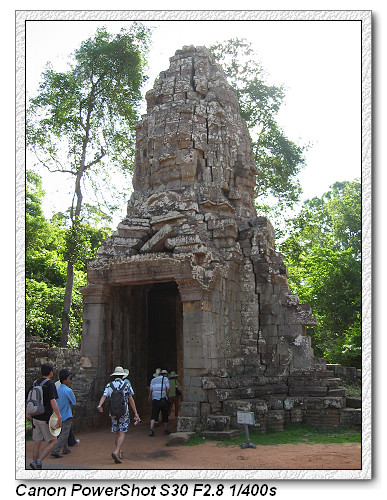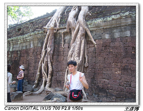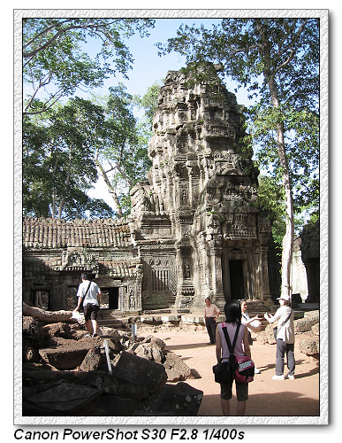 塔普倫神廟,因為古墓奇兵Tombraider電影取景而聲名大噪。建於12世紀末公元1186年,尊奉婆羅門教及佛教。經過五百多年荒漠,有卡波克樹Kapok(蛇樹)盤節在圍牆廟門口。相傳是加亞巴爾曼七世為紀念其母后所建,又稱『母廟』,採巴揚式建築風格,廟內如迷宮一樣,東門進入有舞者長廊。