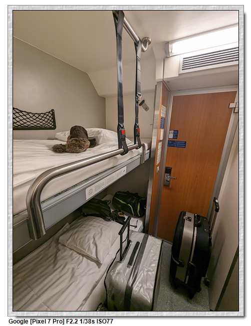 ▼【這個車廂是可以帶寵物的,所以上下鋪的床邊都有多一個空間】