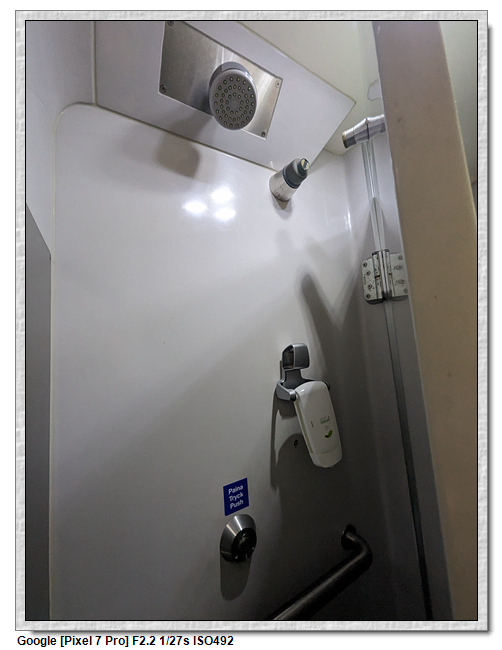 夜鋪車箱分上下層車箱,上層車箱是有含衛浴廁所及兩張房卡(灰色),有熱水但不是特別熱的那種,下層車箱不含衛浴但有兩張房卡(灰色)及一張衛浴卡(黑色),下層共用衛浴跟共用廁所(不用卡)是分開的,下層共用衛浴空間比較大。