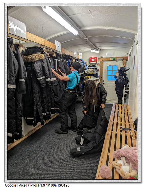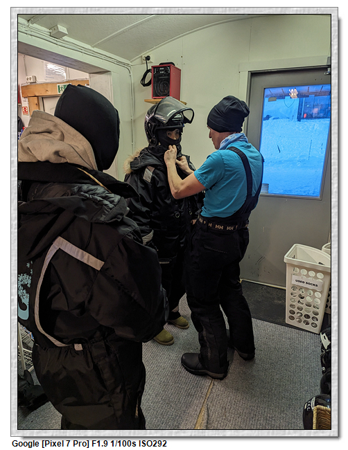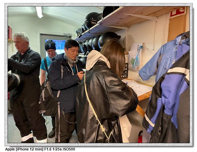 這次換裝比較不一樣,自己的外套要穿在裡面,沒換鞋子,只有詢問鞋子暖不暖和,如果可以就不用換,後來知道全程都沒下車,所以可以不用換。