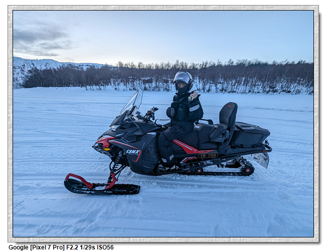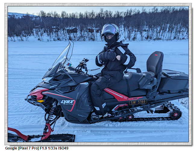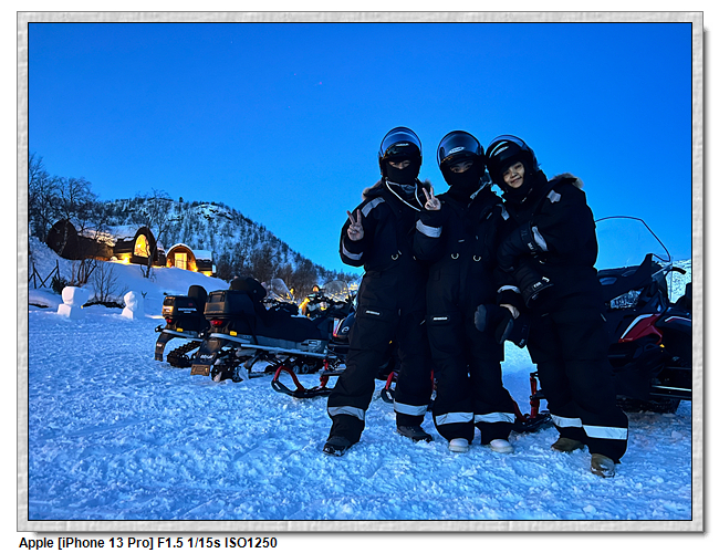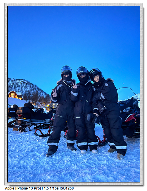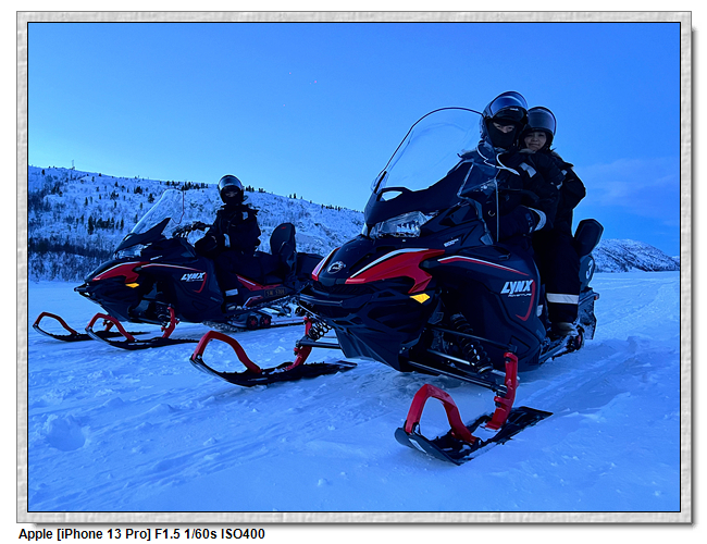 今天有體驗雪地摩托車的活動(2小時),昨天導遊有提到雪地摩托車,他覺得騎雪地摩托車很無聊,就一直騎,也沒做甚麼,我們只有傻笑,因為我們已經預約了。