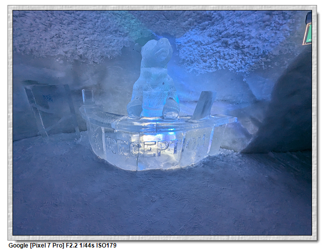 在櫃檯詢問接駁車時間時,因為還有點時間,櫃台建議可以參觀冰屋及哈士奇農場,原來冰屋可以免費參觀,我們就跑去參觀冰屋。