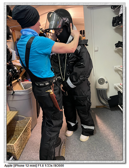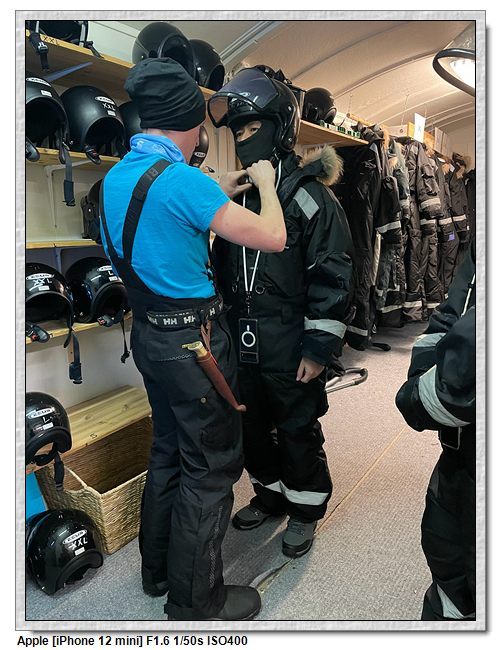 抵達Snowhotel後,領隊帶我們到另一家小木屋換裝,換裝前有詢問是否有駕照,我們表明有駕照,也沒查看駕照,然後就簽屬一份單子,大概就是說騎乘雪地摩托車要有駕照,然後有保險等等的聲明。