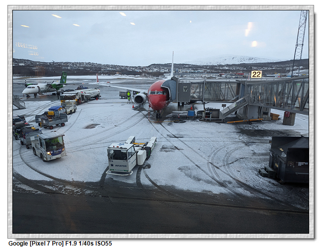 2個小時的飛行,我們終於抵達特羅姆瑟機場。原本從希爾克內斯出發只有短短的55分鐘的飛行時間,搞了將近快兩天才抵達。