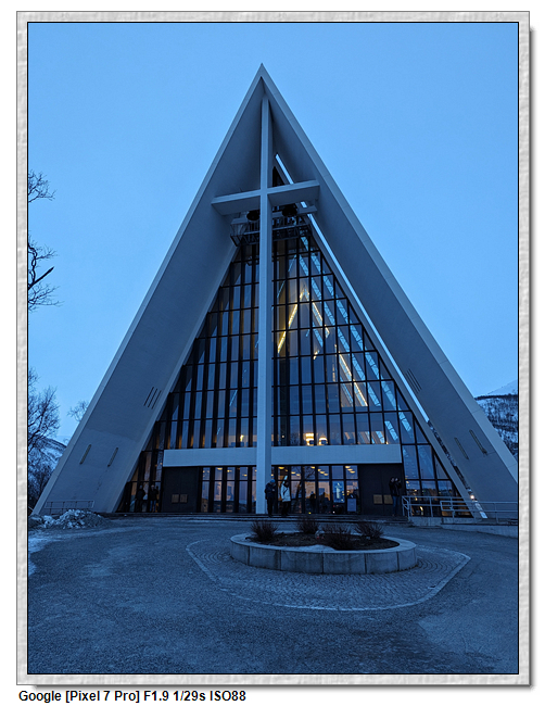 北極大教堂((Arctic Cathedral),是將特羅姆瑟的冬季和極光結合設計的現代感教堂,採冰山造型,是世界上最北的清教徒天主教堂,更是Tromsø的代表性地標。