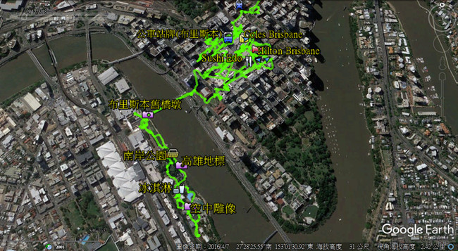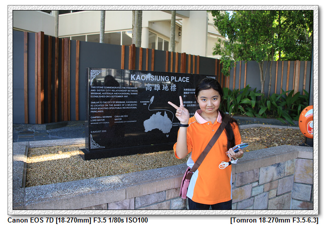 對於台灣而言,這裡有個必看的地標,1997年9月9日高雄市與布里斯本因同為水岸城市結為姊妹市,所立的地標。