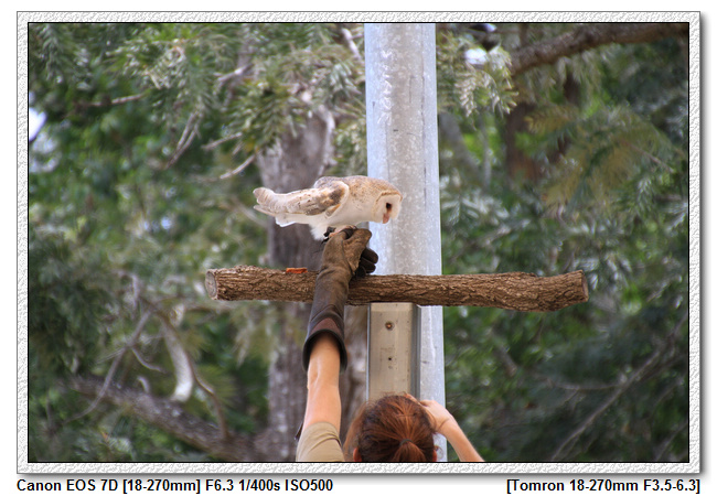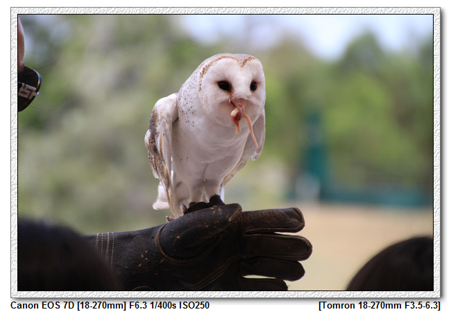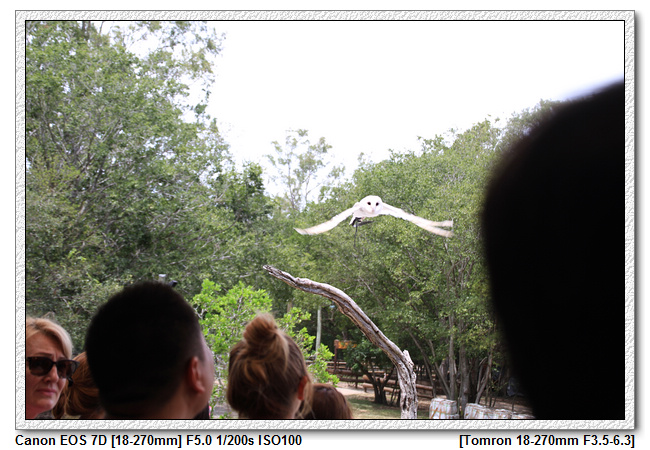 這裡的猛禽秀很讓人印象深刻,在台灣,猛禽大概都是讓飼育員停在手上,然後讓遊客拍照。這裡就不一樣了,在開始之前,解說員強烈建議遊客就坐後就不要亂動,接下來的表演就可感受到為何不能亂移動了。