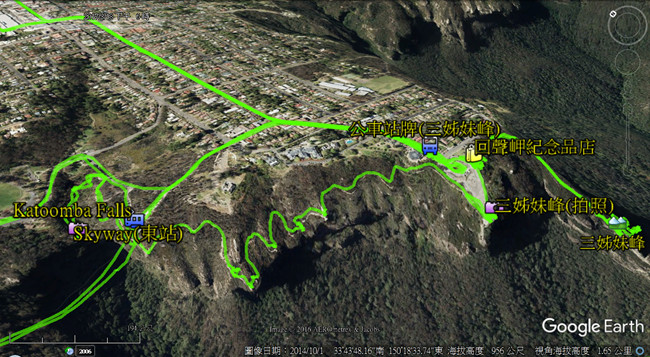 Skyway東站,有個步道可通往三姊妹峰(回聲岬)以及Katoomba瀑布,其實搭公車也可以抵達,不過大部分的人都是走步道欣賞風景。
