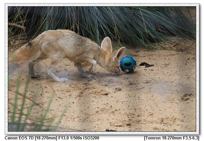 ▼【飼育員把食物放進球裡,邊滾球食物就會掉出來】