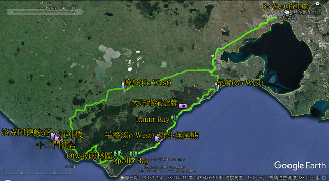 | 1.大洋路紀念牌 | 2.野生無尾熊 | 3.Otway溫帶雨林公園 | 4.十二門徒岩 | 5.洛克阿德峽谷 | 6.晚餐 |