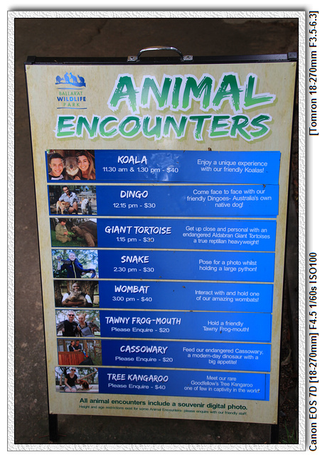 | 1.前往巴拉瑞特 | 2.巴拉瑞特野生動物園 | 3.動物園導覽 | 4.午餐&鳥園 | 5.爬蟲表演 | 6.親近無尾熊 |