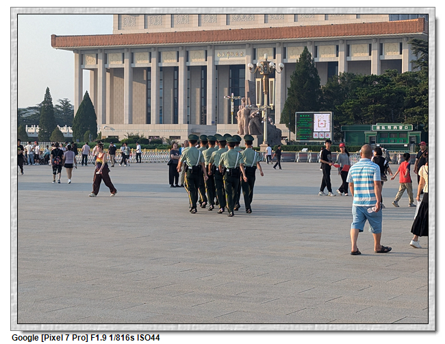 準備進入廣場時,導遊開始整隊(印象中沒有安檢),公安這時會開始點人數,看看有沒有符合報團人數。進入廣場後宣布集合地點後就自由活動了。