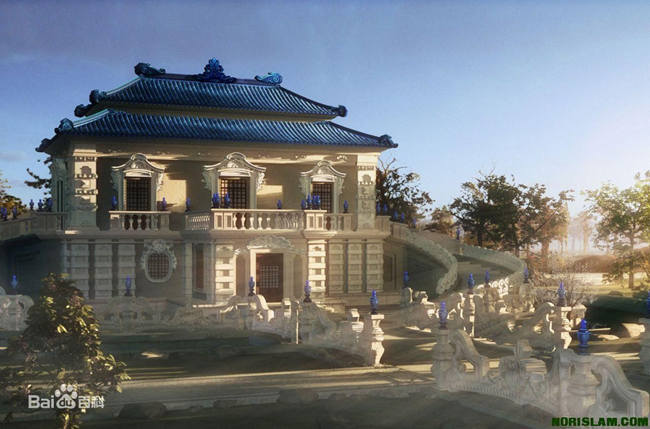 遠瀛觀景點是西洋樓景區的主要景點,從南北軸線上可劃分為南、北、中三段。昔日曾是乾隆皇帝寵愛的香妃生活和娛樂的場所。