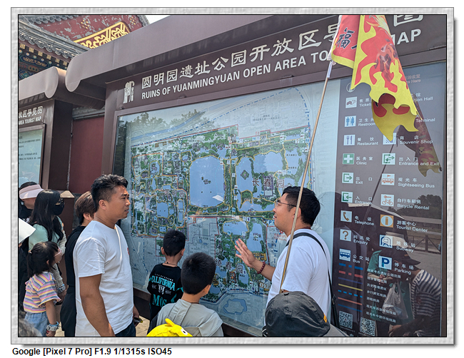 在這裡以兩個景點,一個就是參觀圓明園,另一個就是去清華大學門口拍照,小朋友會有穿學士服的照片,不過導遊說,那些衣服都沒洗過,有點髒。不過最後我們也沒去清華大學門口拍照,因為時間不夠,逛完圓明園都壓線了。