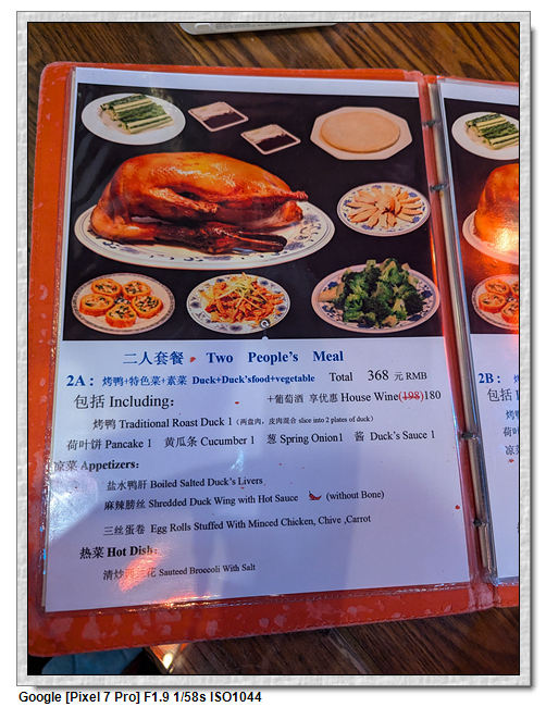 後記:回到台灣後,我們特別訂了享鴨餐廳,趁著還有點記憶時來比較比較,三人結論是,北京烤鴨比較好吃。因為享鴨的外皮沒有北京烤鴨酥脆,稍嫌濕嫩。