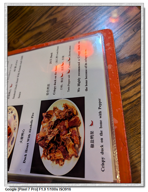 椒鹽鴨架就像是在台灣吃烤鴨時,所剩的鴨骨,在台灣是用炒的水水的(也是好吃),但這裡的處理方式乾的,很像東山鴨頭,只是它是鹹的,東山鴨頭是甜的,不同風味,也是好吃。