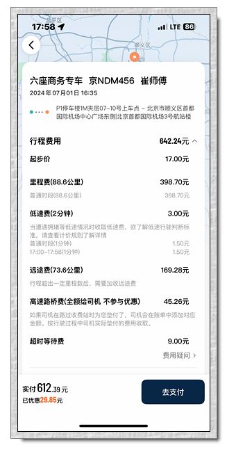 ▼【抵達首都機場時已經17:58,我們搭的網約車】