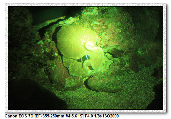 夜探珊瑚王國館也是這次夜宿的主題之一。一般都是白天參觀珊瑚館,珊瑚都是呈現光鮮亮麗的形貌。這次就是來看看晚上珊瑚的樣子。