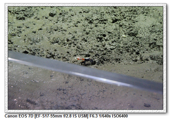 【招潮蟹;燈光角度的關係,招潮蟹看不見我們,不然早就跑走了】