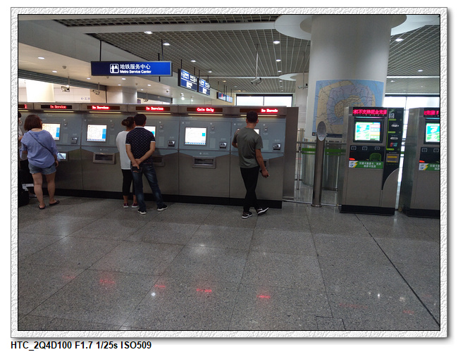 地鐵站旁,一樣有一排自動售票機,其中有兩台長得不一樣的機器,這兩台是可自動購買公交卡(其中一台可辦退卡)。考慮一會兒,我們決定購買公交卡,回國前再退卡。