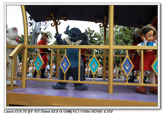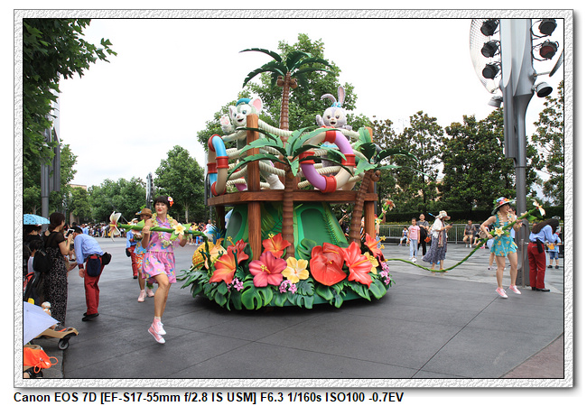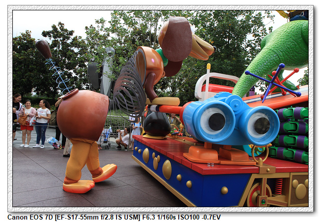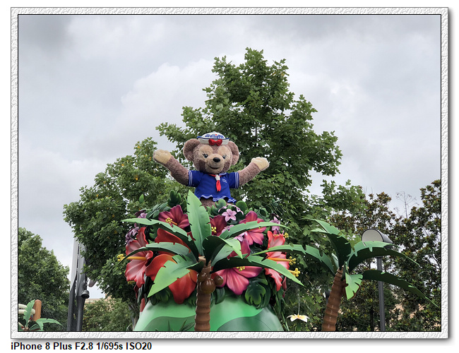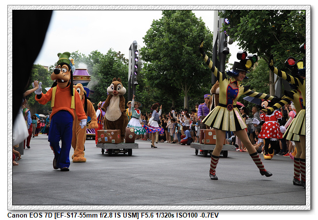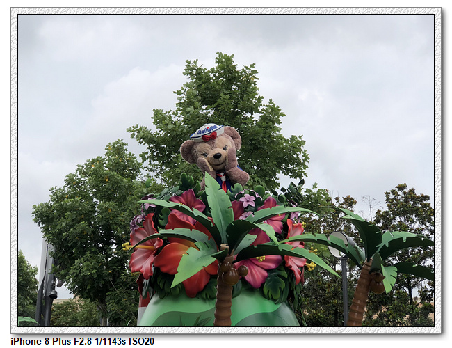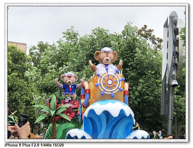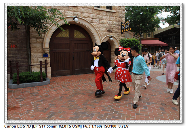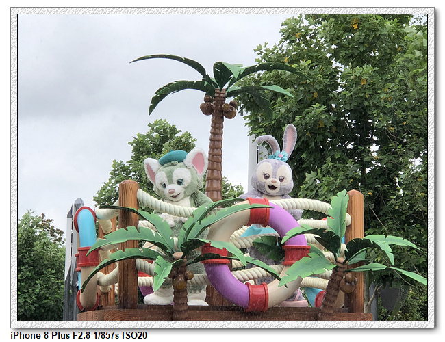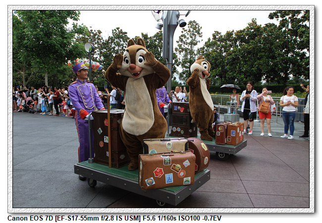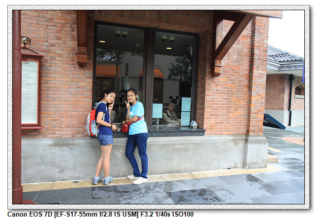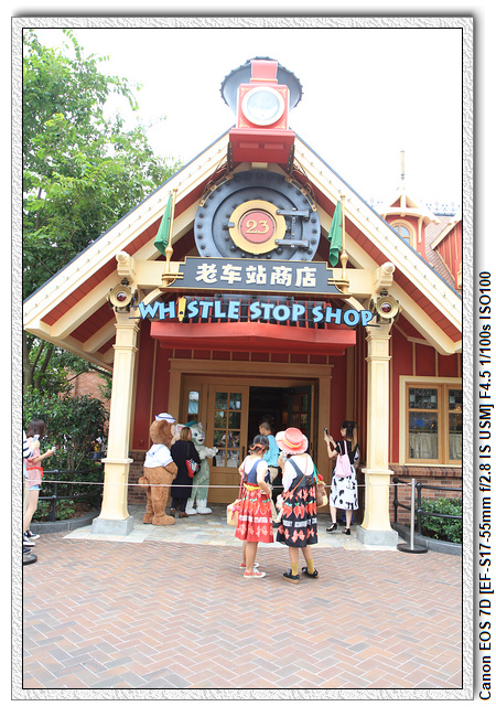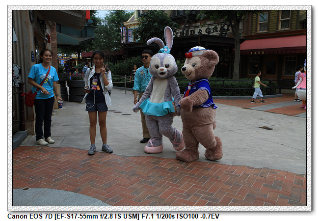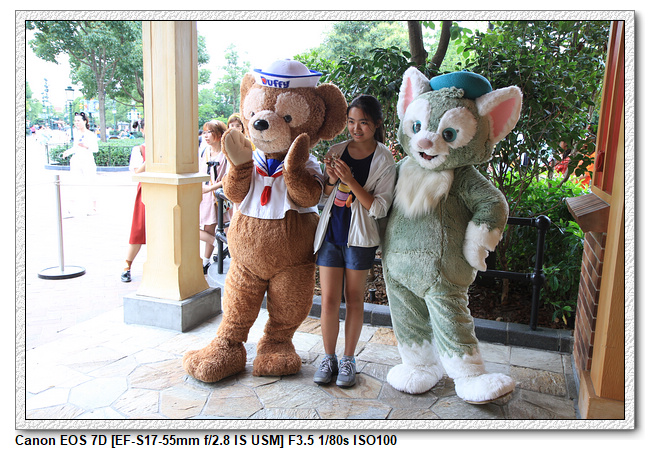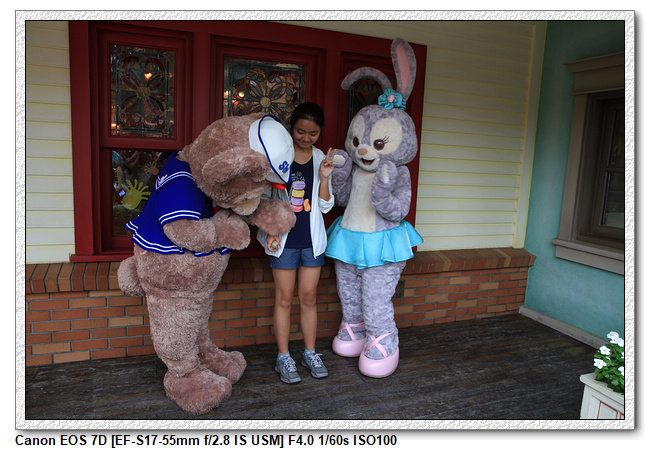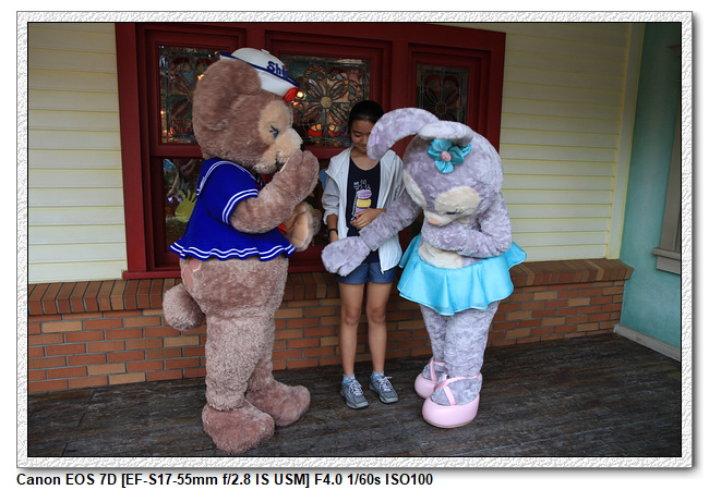 不過,就在尋找老車站商店的途中,意外遇到雪莉玫&星黛露出巡,我們就一路跟隨他們,來到拍照地點等待。滿幸運的,還算是排的前面,在我們前面只有三對6位,感覺應該很快就輪到。但是,事情不是我們這些非專業達粉想的這麼簡單,前面有對專業粉絲,除了擺大量各式動作之外(好吧,難免的行為,畢竟也不是常來這拍照),竟然拿出簽名簿(忘了拍照,真可惜),沒想到雪莉玫&星黛露也很自然地就簽了,實在很好奇穿著一身 布偶裝,是要怎麼簽名(聽說還簽得很漂亮,還會畫愛心,有練過的)。