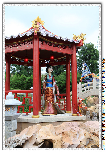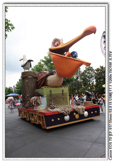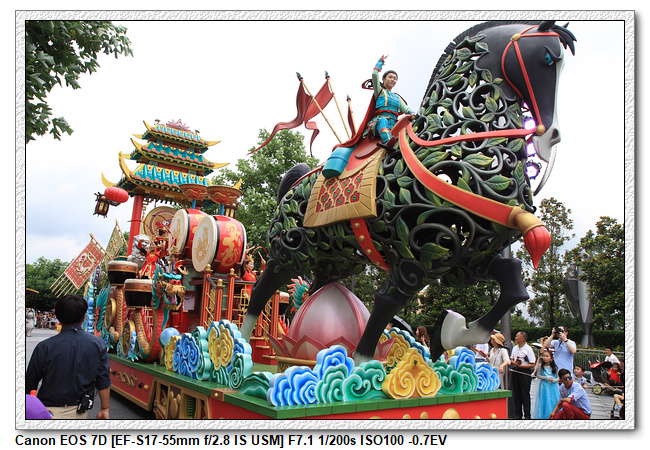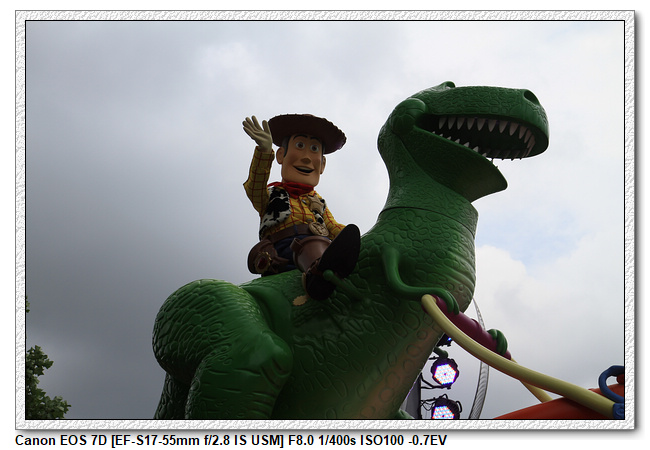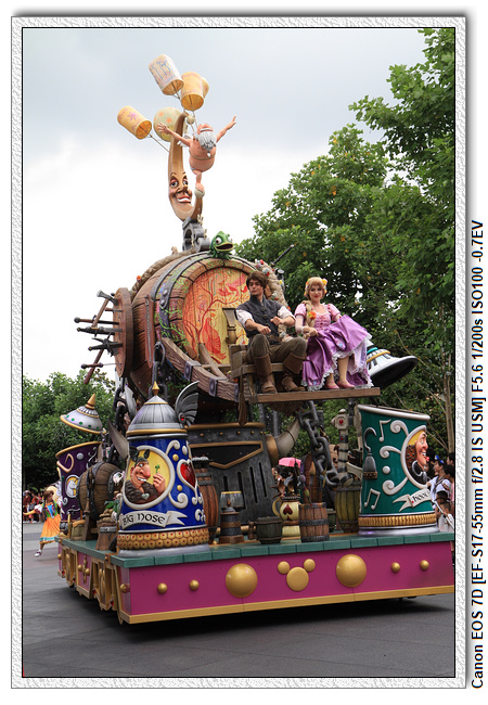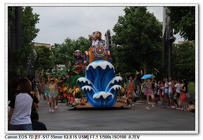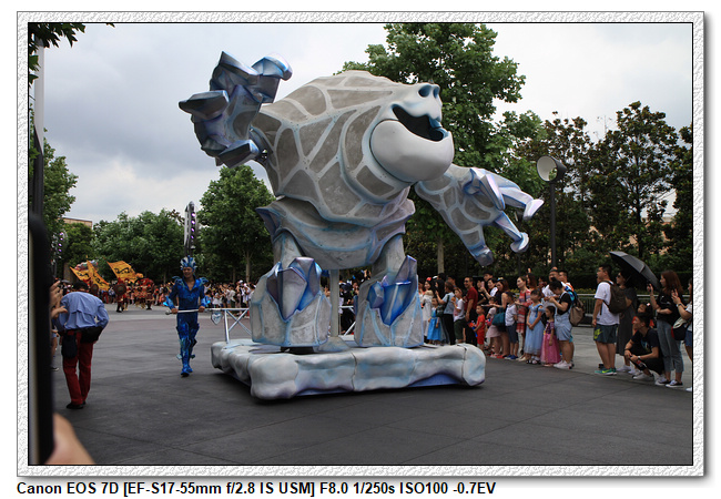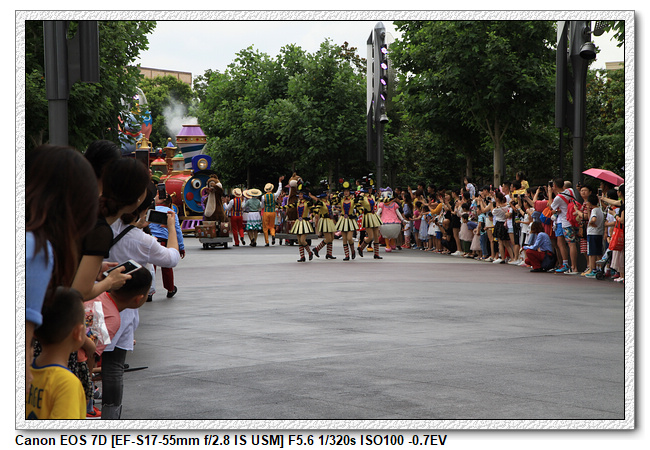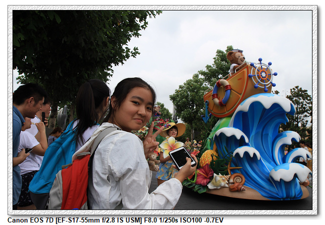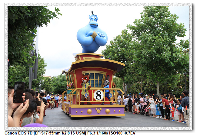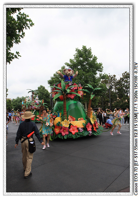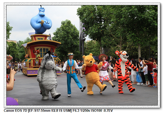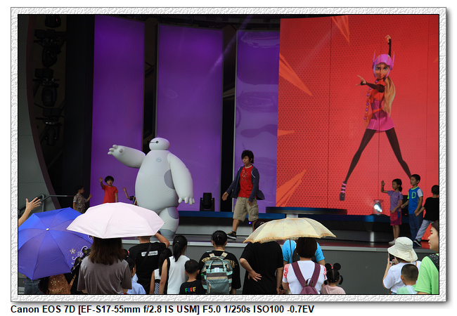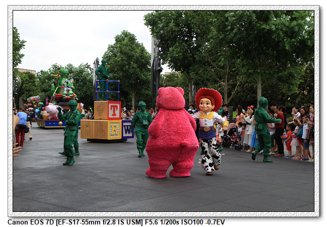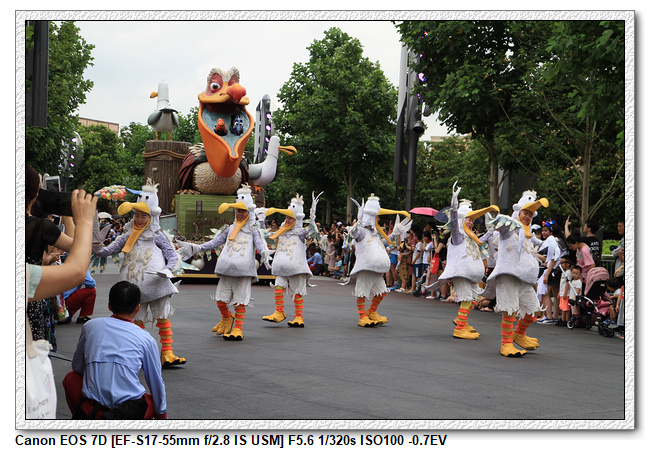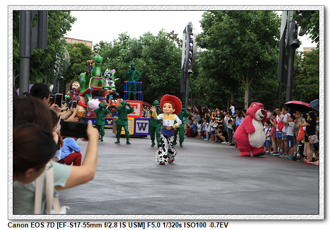 不過,就在尋找老車站商店的途中,意外遇到雪莉玫&星黛露出巡,我們就一路跟隨他們,來到拍照地點等待。滿幸運的,還算是排的前面,在我們前面只有三對6位,感覺應該很快就輪到。但是,事情不是我們這些非專業達粉想的這麼簡單,前面有對專業粉絲,除了擺大量各式動作之外(好吧,難免的行為,畢竟也不是常來這拍照),竟然拿出簽名簿(忘了拍照,真可惜),沒想到雪莉玫&星黛露也很自然地就簽了,實在很好奇穿著一身 布偶裝,是要怎麼簽名(聽說還簽得很漂亮,還會畫愛心,有練過的)。
