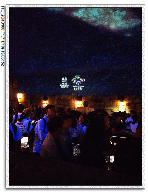 進入大洞穴之後,第一 眼就是滿天的銀河星空,巧妙的利用投影以及燈光營造出星空,的確有讓人驚豔的感覺。同時,為了解緩排隊時的無聊感,透過QR code加入線上的問答小遊戲,一分面轉移注意力,一方面也可增加知識。如果能夠連續答對五題,會把你的名字秀在牆上(不過是代碼)。
