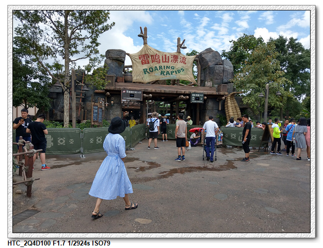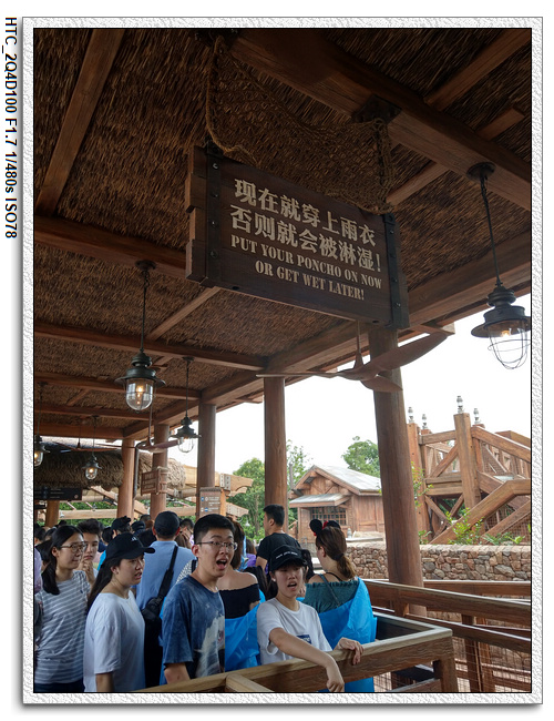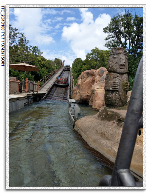 看完泰山,雷鳴山的時間也到了,就順著路來到雷鳴山漂流。一開始小羽爸沒有很積極的想第一時間抽雷鳴山的fastpass,因為這個似乎在台灣每個遊樂場都有類似的設施(六福村與麗寶樂園都有),也不覺得特別,不知為何會大排長龍,最後是因為其他的都被抽完了,所以今天的fastpass只好是雷鳴山漂流。