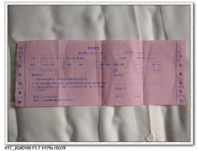 ▼【 預付押金的收據;上海郁苑賓館】