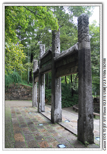 擁翠山莊,在虎丘擁翠山莊牆的二邊刻有「龍、虎、豹、熊」行草大字石刻四方,蒼勁有力,氣勢磅礴。相傳為清咸豐八年(公元1858年)桂林陶茂森所書,由他處移置於此。擁翠山莊是蘇州唯一一座無水的園林。