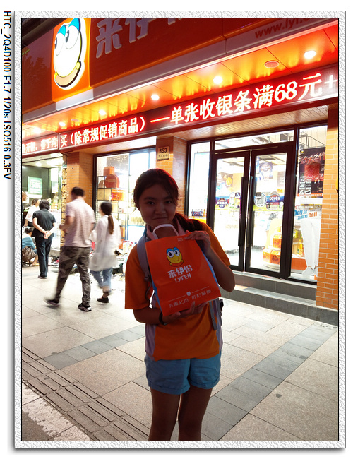 回旅館前,到樓下對面的連鎖店:來伊份,買小羽爸媽要帶回公司的伴手禮,每種小零嘴都是一份一份的,很適合發送。這可是在台灣沒看到的店 ,居然在上海是連鎖店。