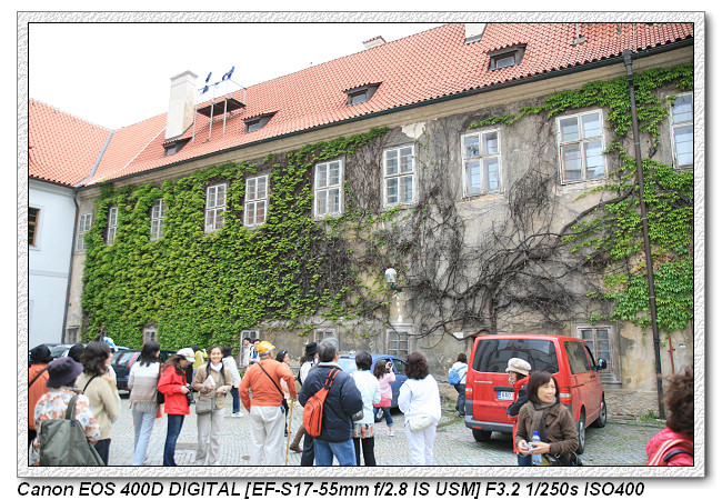 今天的行程是唯一一天需有當地導遊,手裡拿著"小花"是我們的導遊。大陸人,來捷克念書後便定居在這