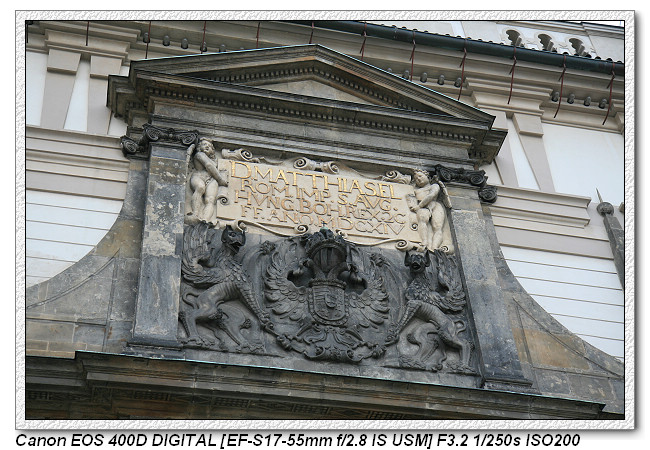 馬提亞斯城門,建於1614年,連接第一中庭與第二中庭,是布拉格最早的的巴洛克式建築,雖然名稱是以哈布斯堡王朝的馬提亞斯大帝為名,但實際上建立的時間是在魯道夫二世在位的時候。這位哈布斯堡王朝國王對於布拉格的建築與文化建樹極多,後來沈溺於占星,而遭他的兄弟馬提亞斯篡位。