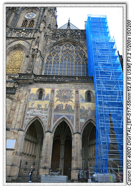 通過第一中庭之後,就是聖維塔教堂,前後用六百年的時間建完(1929年最後完工),屬於哥德式建築(外表高、尖、直),可惜目前正在整修中。