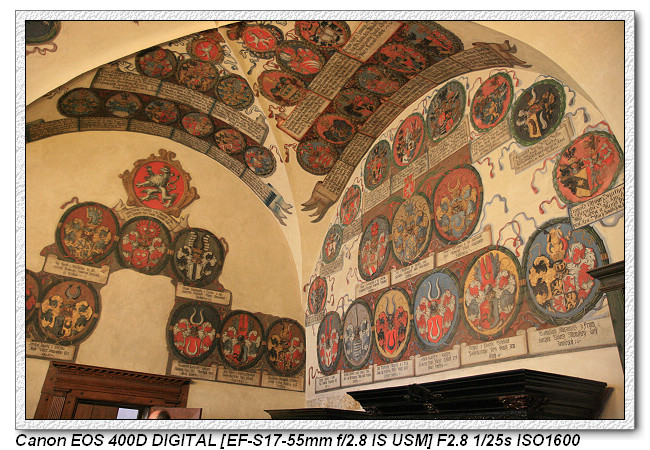 ▼【二樓為大地產廳,屋頂全是各時期家族的徽章】