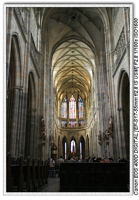 建於 1344 年的聖維塔大教堂(14世紀查理四世時代),由第一任建築師是法蘭西哥德式建築師,先完成東側的建築,中間遇到胡斯戰爭而中斷。西側的建築直到19~20世紀才又開始陸續動工。直到1929年才正式完成。前後將近700年。