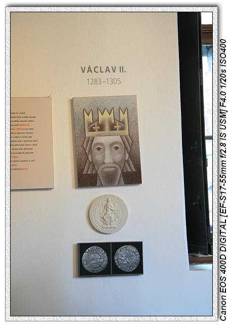 ▼【瓦茲拉夫二世以及他用的銀幣種類。牆上繞一圈有各個國王的圖像&銀幣種類】