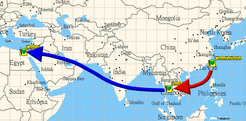 2007.04.02 20:00 搭乘泰國航空,在曼谷轉乘埃及航空,終於在埃及當地時間2007.04.03 4:50抵達開羅。