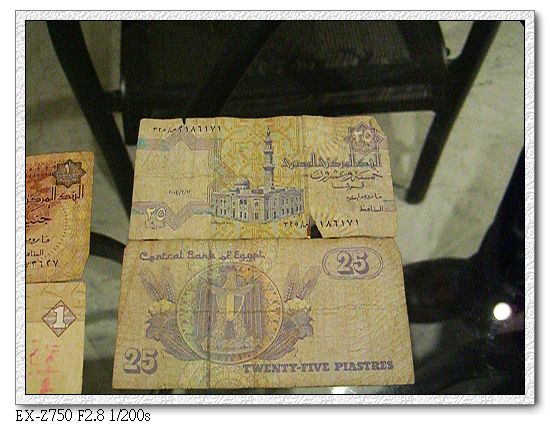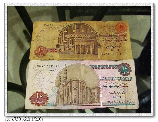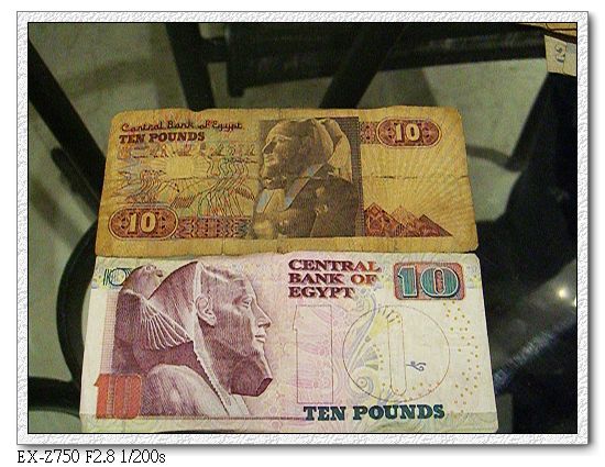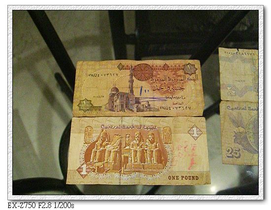 埃及雖然可使用美金交易,但大多的時間還是使用當地貨幣比較方便且划算,尤其是以埃幣1元對於觀光客而言最為搶手。(上廁所 需支付埃幣1元,但埃幣1元已經不生產了,所以都舊舊髒髒的。)