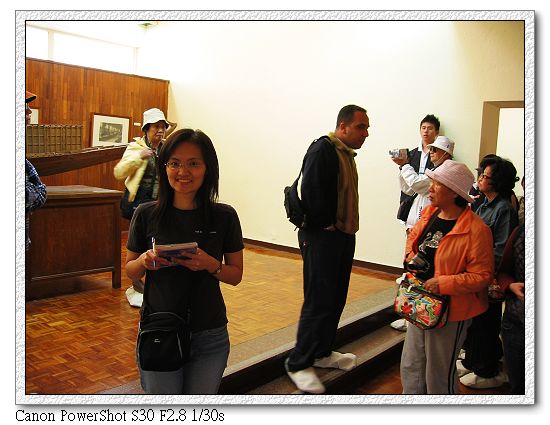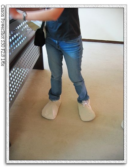 進入館內,每個人都要穿上鞋套,避免鞋子磨壞地板。鞋套很特別,好像是麻布做成的。走起路好像企鵝。