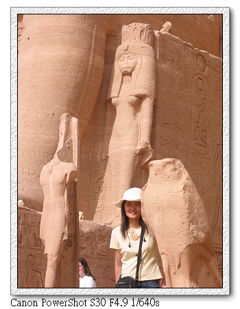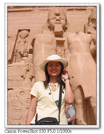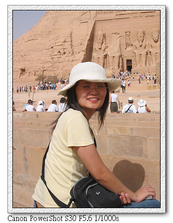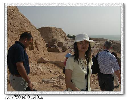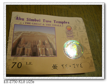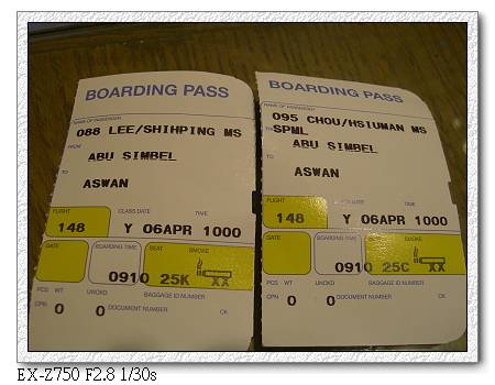原本預計本第二小隊應是最後到達,但沒想到卻是出奇的順利。從開羅出發,搭乘埃及航空內陸飛機,先在亞斯文短暫停留後,再飛阿布辛貝。不知是不是機長飛太慢,到亞斯文時停留不到30分鐘(連下飛機都沒有),馬上起飛至阿布辛貝。結果我們竟然最先到。打電話給江浩時,江浩還一度以為我們坐錯飛機,下錯站。後來聽阿洲說,原來他們在亞斯文下飛機後就不飛了,停留3個小時後才起飛。難怪阿洲從 桃園機場就一直碎碎念,說埃及航空排班很爛,要有心理準備。現在終於見識到了。