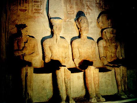 拉美西斯二世神殿門口四座大神像,都是拉姆西斯二世,但不同年齡。由照片左至右,分別是年輕到衰老。
