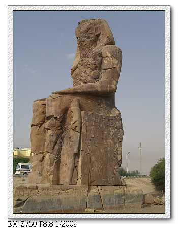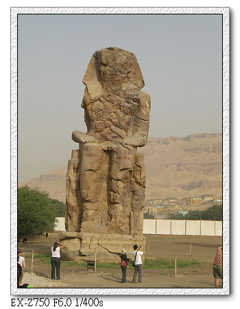 石像高約18米,腳邊立著阿曼和闐三世的母親Mutemwiya(左)和皇后Tiy(右)。